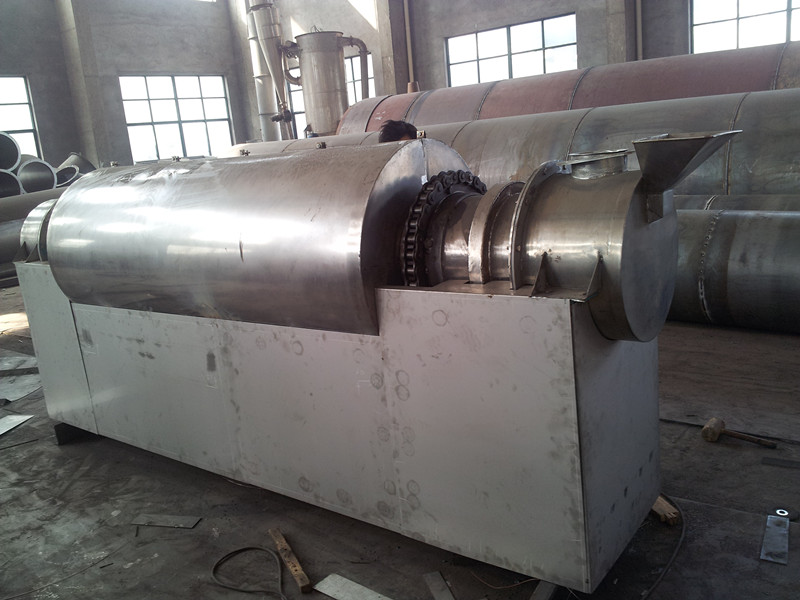 濕物料從干燥機一端投入后,在內筒均布的抄板器翻動下,物料在干燥器內均勻分布與分散,并與并流(逆流)的熱空氣充分接觸,加快了干燥傳熱,傳至推動力。在干燥過程中,物料在帶有傾斜度的抄板和熱氣流的作用下,可調控地運動至干燥機另一段星形卸料閥排出成品。