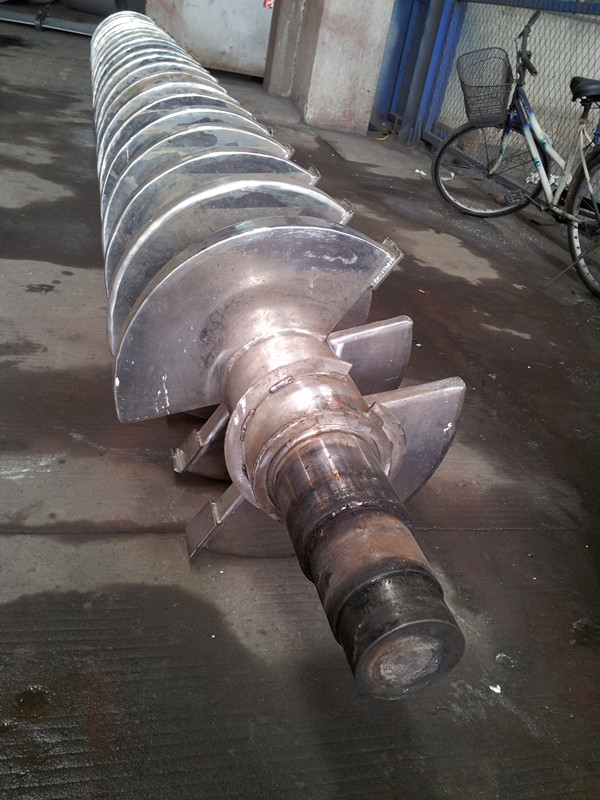 空心軸上密集排列著楔型中空漿葉,熱介質經空心軸流經漿葉。單位有效容積內傳熱面積很大,熱介質溫度從-40℃到320℃,可以是水蒸汽,也可以是液體型:如熱水、導熱油等。間接傳導加熱,沒有攜帶空氣帶走熱量,熱量均用來加熱物料。熱量損失僅為通過器體保溫層向環境的散熱。楔型漿葉傳熱面具有自清潔功能。物料顆粒與楔型面的相對運動產生洗刷作用,能夠洗刷掉楔型面上附著物料,使運轉中一直保持著清潔的傳熱面。漿葉干燥機的殼體為Ω型,殼體內一般安排二到四根空心攪拌軸。殼體有密封端蓋與上蓋,防止物料粉塵外泄而充分發揮作用。