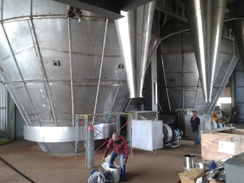 5、蒸發: 為了降低噴霧干燥的成本,我們濃縮12-15%的固體萃取濃度,直到50%。當然,如果想要低濃度,去設計一個35%固體濃度室是沒問題的。通常不利,在蒸發期間會失去香味,不過用我們的香味回收系統,100%的排除這種情況。 6、噴霧干燥: 噴霧干燥或霧化是最普遍的,既有效又經濟的可以獲得速溶咖啡,總之保證產品的高質量和好口味的特點。在這個處理過程中,帶中壓噴嘴的高結構的干燥機和干燥空氣并流遞減使用。加熱壓縮空氣,依靠一個直接由氣體燃料的系統或依靠一個由蒸汽或液體燃料的系統。干燥溫度非常重要,為了保持香味不變,溫度必須要低一點。干燥由速溶粉未組成的產品, 空心的小球體做成大約100÷300 μm.的顆粒。需要CO2注射系統來降低容積密度。