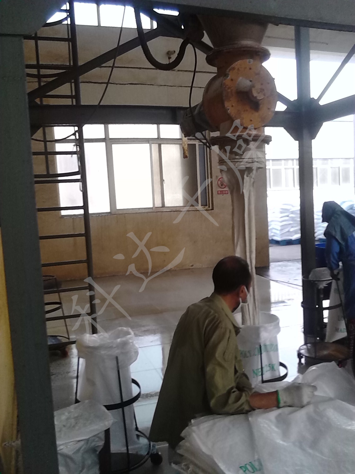 4、 收料:它由高效旋風除塵器系統組成, 物料接觸處為不銹鋼316L制作。高效旋風除塵器采用四組合式結構,下部設計2只料倉,使物料集中收集,料倉下部安裝有氣錘,方便物料迅速落下。
