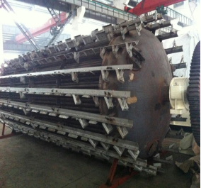 (2)干燥機內部核心部件管束由優質鍋爐鋼管(GB3087)制成,采用先進的脹接工藝,極大地吸收和消除了管束在轉動過程中產生的的交變應力,徹底解決了傳統焊接工藝在焊縫處易產生斷裂的缺陷。